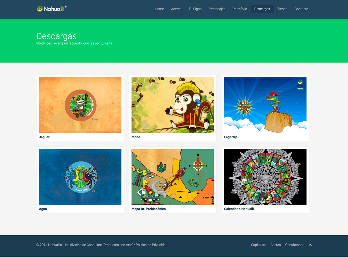 Re Magazine3 junio, 2024Capitulare3 junio, 2024 Show all Nahuallis Categories Diseño Web Cliente: Nahuallis. Galería de Personajes Animados de la Cultura Azteca. Proyecto: Diseño y desarrollo de sitio web.