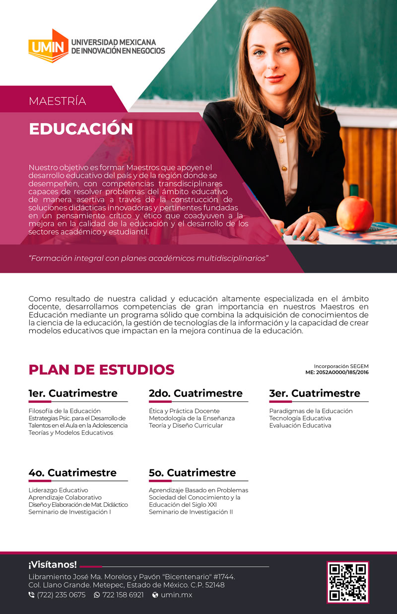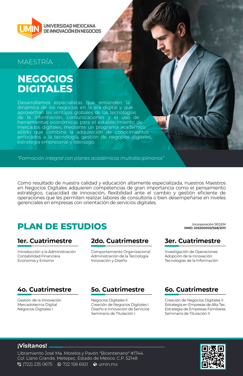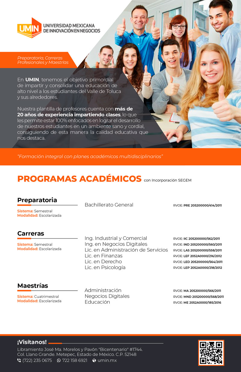 UMIN Billboard Oferta Educativa4 junio, 2024UMIN4 junio, 2024 Show all UMIN Pósters Promocionales Categories Diseño Cliente: UMIN. Universidad Mexicana de Innovación en Negocios. Proyecto: Diseño de artes para pósters y flyers promocionales.